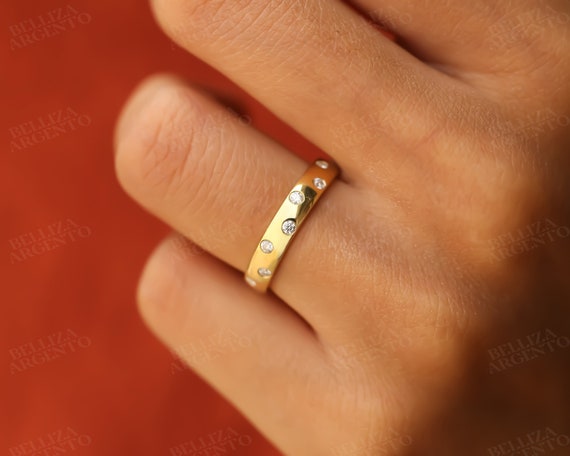 3 8 Mm Flush Set Moissanite Wedding Band 14k Solid Gold Diamond Wedding Band Dainty Diamond Band Unique Wedding Band Gold Stacking Ring Etsy